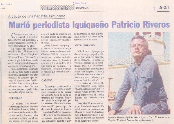 A causa de una hepatitis fulminante murió periodista iquiqueño Patricio Riveros [artículo]