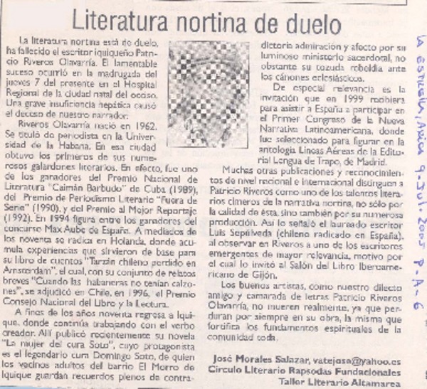 Literatura nortina de duelo [artículo] José Morales Salazar.