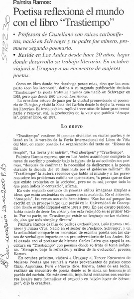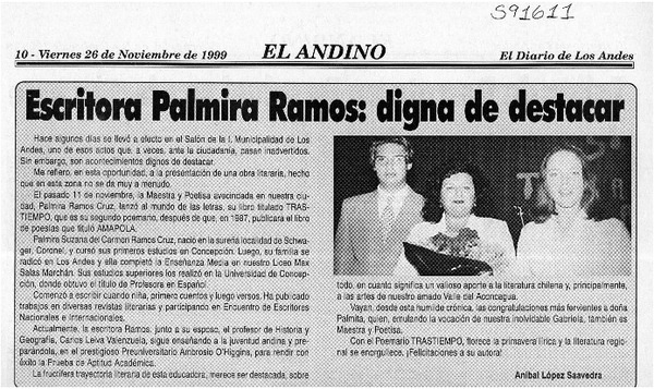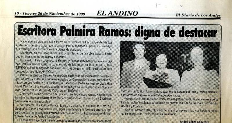 Escritora Palmira Ramos : digna de destacar [artículo] Aníbal López Saavedra.