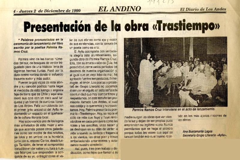 Presentación de la obra "Trastiempo" [artículo] Ana Bustamante Lagos