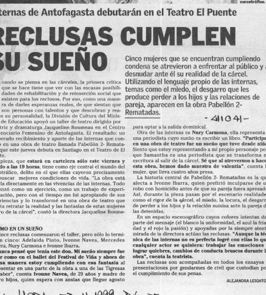 Reclusas cumplen su sueño [artículo] Alejandra Leighton