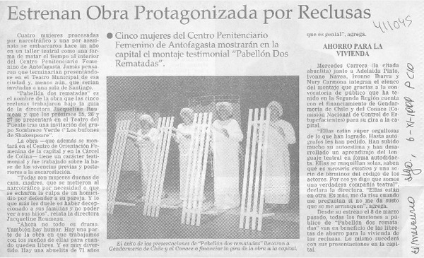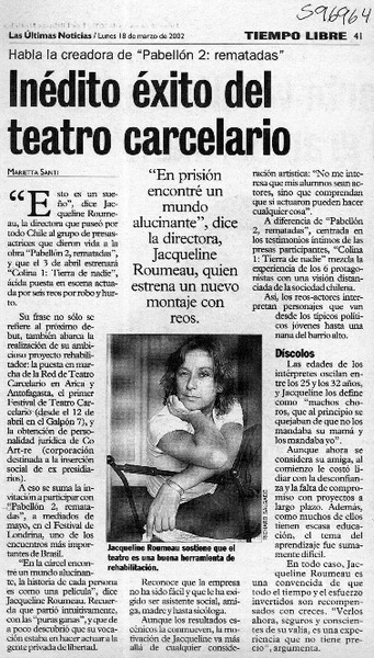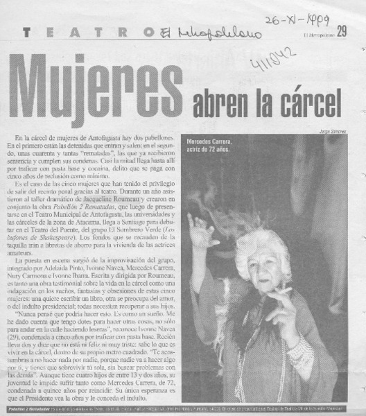 Inédito éxito del teatro carcelario [artículo] Marietta Santí