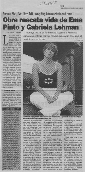 Obra rescata vida de Ema Pinto y Gabriela Lehman [artículo] Leopoldo Pulgar I.