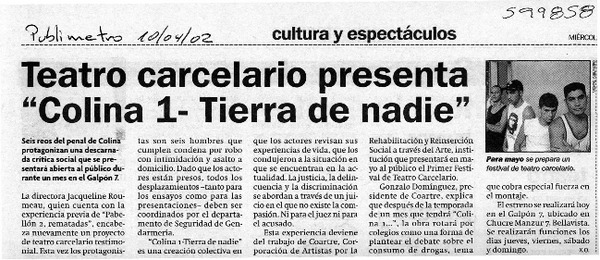 Teatro carcelario presenta "Colina 1, tierra de nadie" [artículo] X. O.