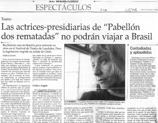 Las actrices-presidiarias de "Pabellón dos rematadas" no podrán viajar a Brasil [artículo] Verónica San Juan.
