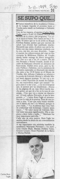 Autores chilenos - Las Ultimas Noticia (Santiago, Chile)-- - Ruiz-Tagle, Carlos