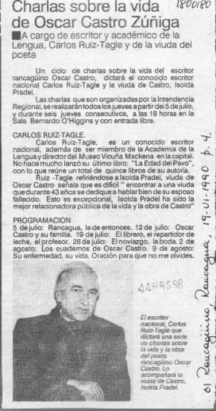 Charlas sobre la vida de Oscar Castro Zúñiga [artículo].