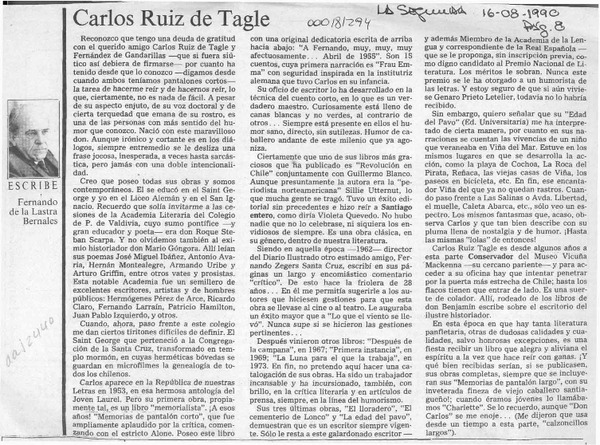 Carlos Ruiz-Tagle [artículo] Fernando de la Lastra Bernales.