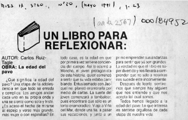 La edad del pavo: [artículo] Tomás Soto Aguirre