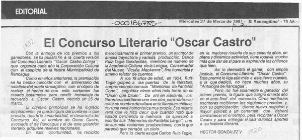 El concurso literario "Oscar Castro" [artículo] Héctor González V.