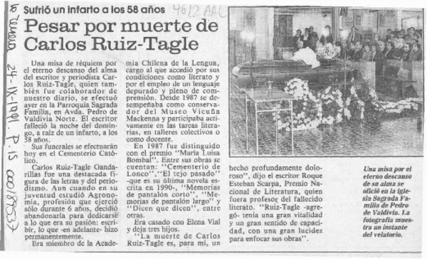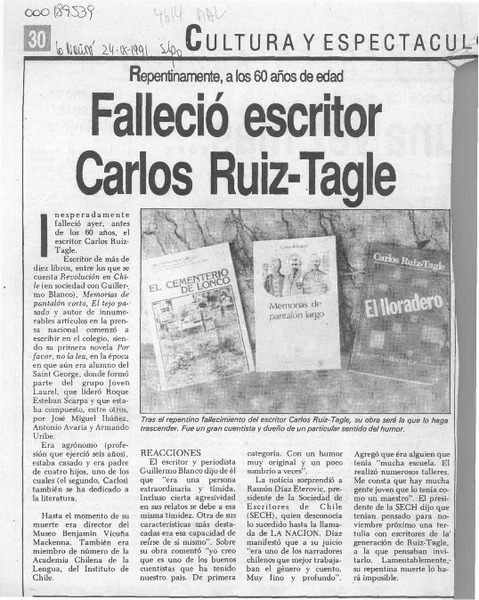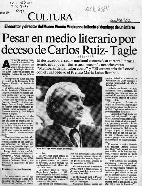 Falleció escritor Carlos Ruiz Tagle [artículo].