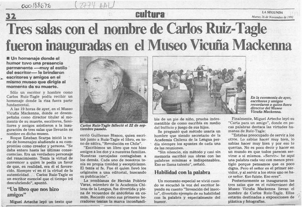 Tres salas con el nombre de Carlos Ruiz-Tagle fueron inauguradas en el Museo Vicuña Mackenna [artículo].