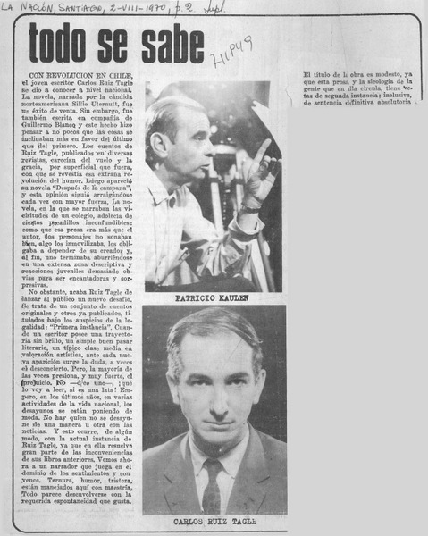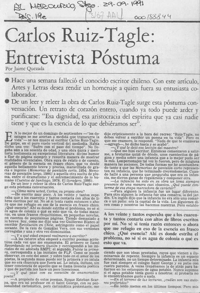 Autores chilenos - Ruiz-Tagle, Carlos - [entrevista] - El Mercurio (Santiago, Chile)--