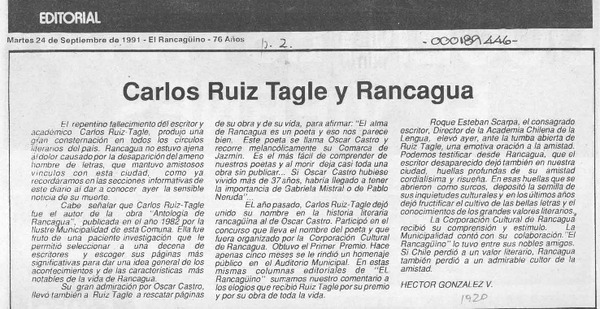 Autores chilenos - Ruiz-Tagle, Carlos - Antología de Rancagua - El Rancagüino (Rancagua, Chile)--