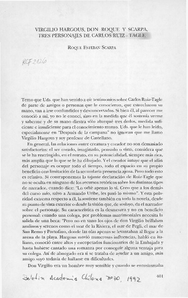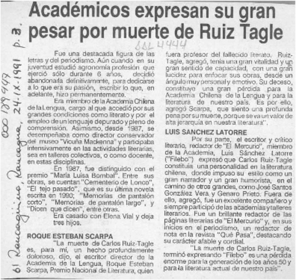 Carlos Ruiz-Tagle en la Academia [artículo] Roque Esteban Scarpa.