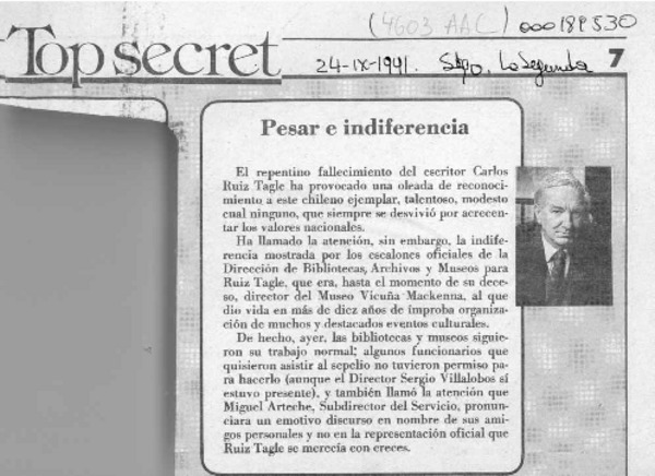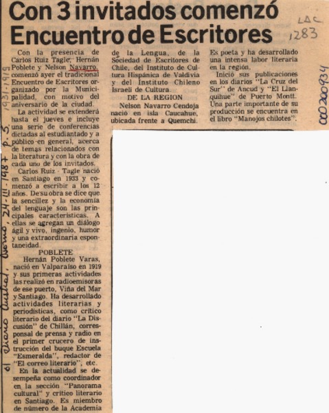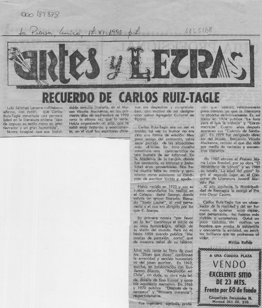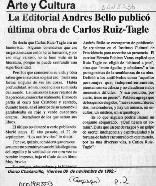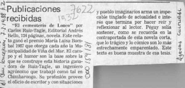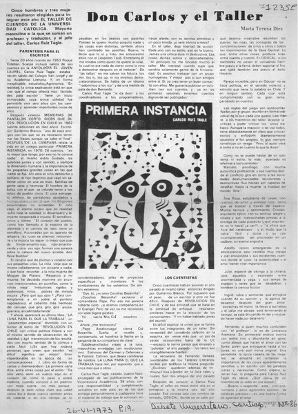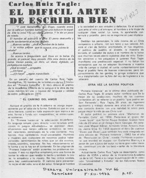 Autores chilenos - Ruiz-Tagle, Carlos - Primera instancia - El Sur (Concepción, Chile)--