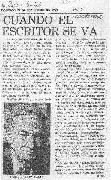 Carlos Ruiz Tagle: "Quisiera ser un escritor con tiempo". [artículo]