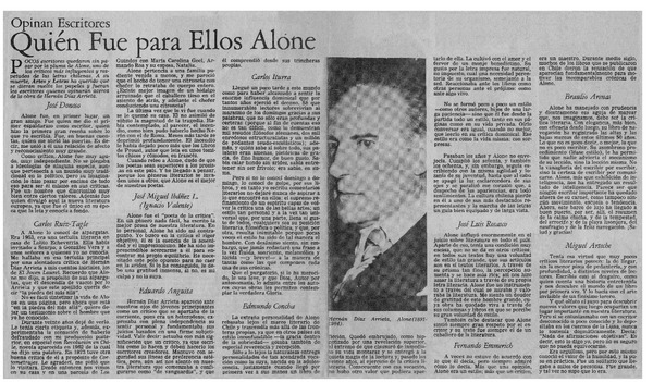 Alone - Concha, José - Autores chilenos - Rosasco, José Luis - Ruiz-Tagle, Carlos - Donoso, José - Anguita, Eduardo - Emmerich, Fernando - Arenas, Braulio - Ibáñez Langlois, José Miguel - Arteche, Miguel