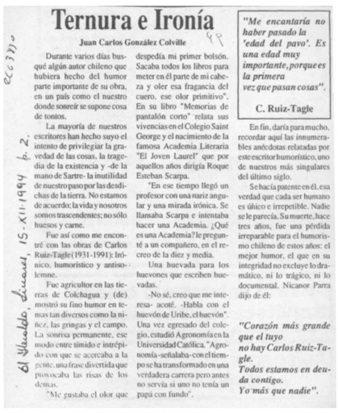 Ternura e ironía [artículo] Juan Carlos González Colville.