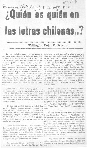 Quién es quién en las letras chilenas? [artículo] Wellington Rojas Valdebenito.