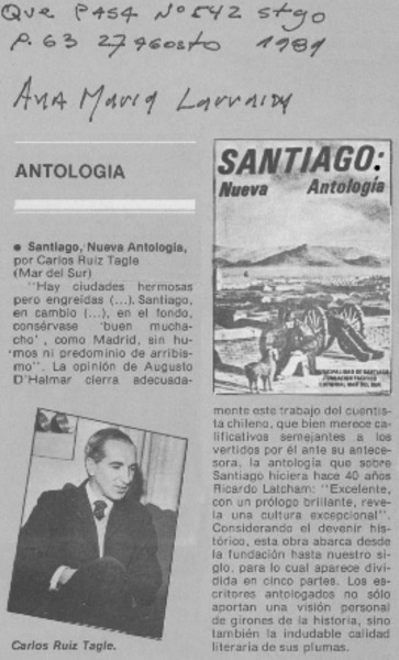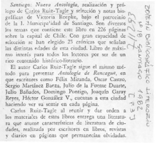 Autores chilenos - Ruiz-Tagle, Carlos - Santiago, nueva antología