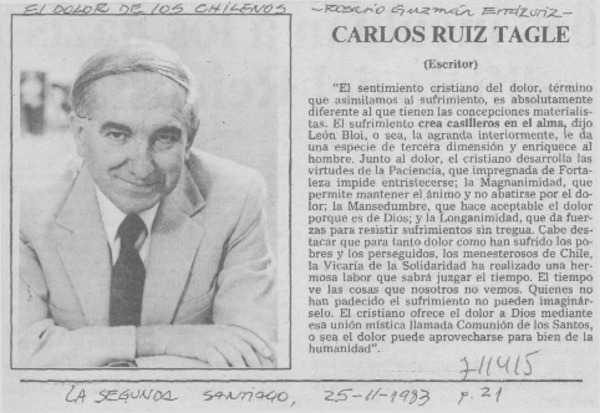 Pesar por muerte de Carlos Ruiz-Tagle [artículo].