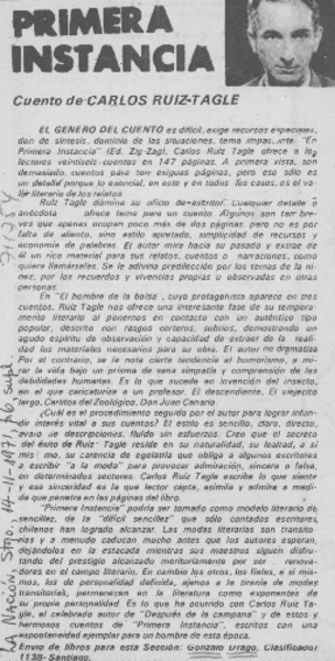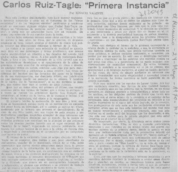 Carlos Ruiz-Tagle: "Primera instancia" [artículo] Ignacio Valente.