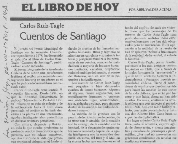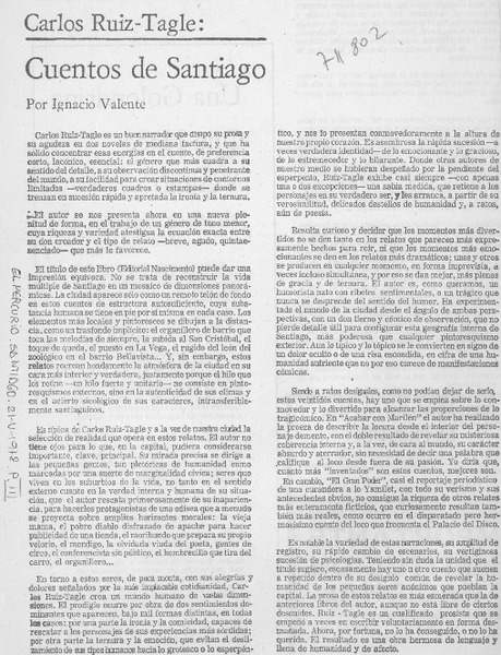 Cuentos de Santiago [artículo] Ignacio Valente.