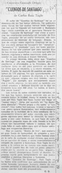 Cuentos de Santiago" [artículo] Gonzalo Drago.