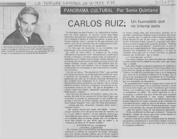 Murió Carlos Ruiz-Tagle, un hombre sencillo y un escritor muy entretenido que se reía de todo, comenzando por sí mismo [artículo] V. M.