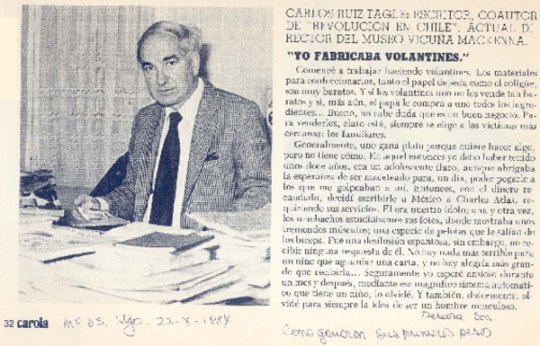 Carlos Ruiz-Tagle, "si no escribo miento": [entrevista] [artículo]