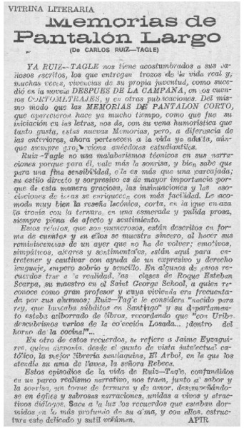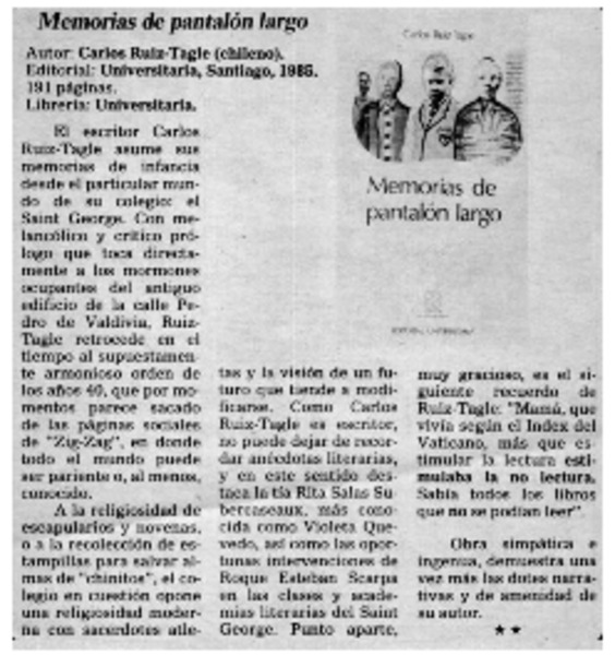 Autores chilenos - Ruiz-Tagle, Carlos - Memorias de pantalón largo