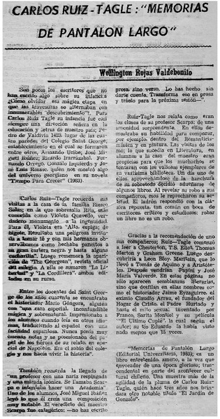 Carlos Ruíz-Tagle; "memorias de pantalón corto" [artículo] Wellington Rojas Valdebenito.