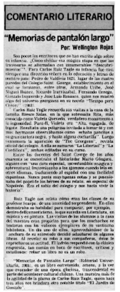 "Memorias de pantalón largo" [artículo] Wellington Rojas.