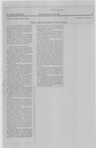 Tres libros sobre Rancagua [artículo] Héctor González V.