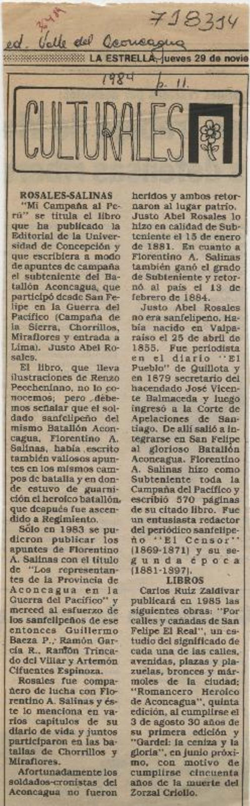 Culturales Rosales-Salinas "mi campaña al Perú". [artículo] :