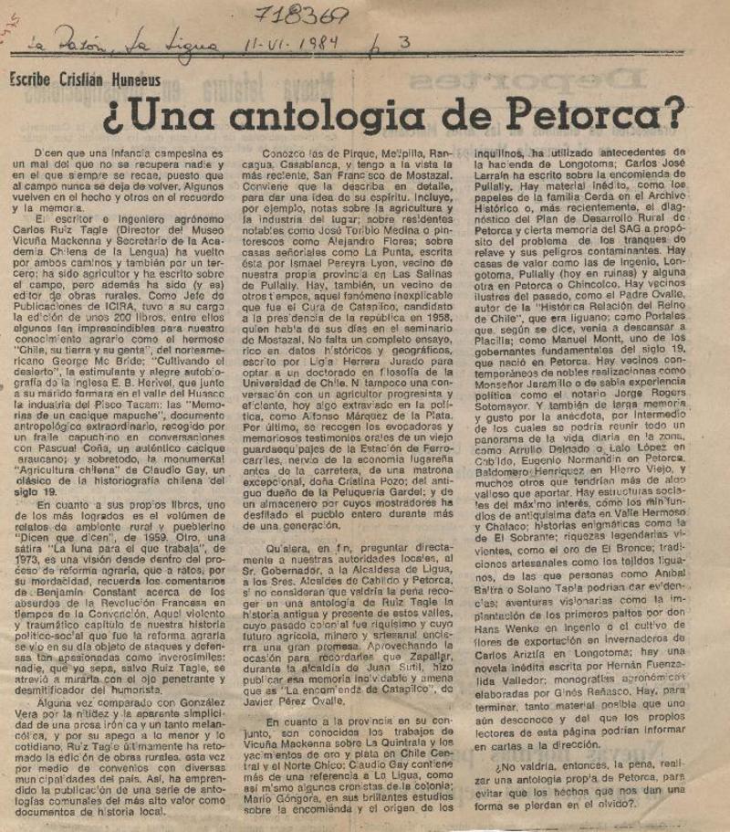 Una antología de Petorca? [artículo] Cristián Huneeus.