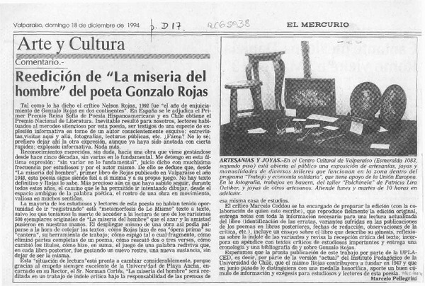Reedición de "La miseria del hombre" del poeta Gonzalo Rojas [artículo] Marcelo Pellegrini.