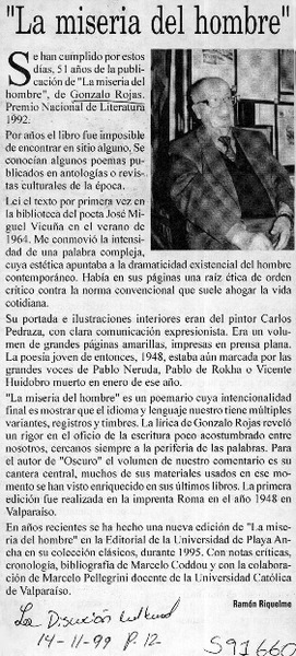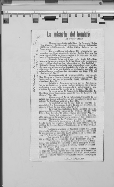 "La miseria del hombre" [artículo] Ramón Riquelme