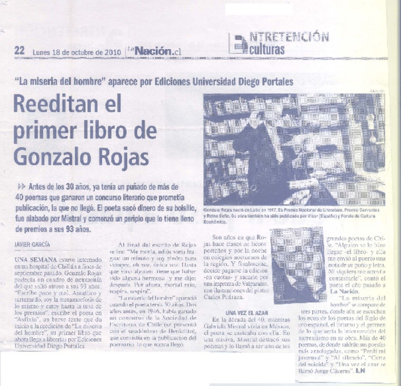 Reeditan el primer libro de Gonzalo Rojas [artículo] Gabriela García.