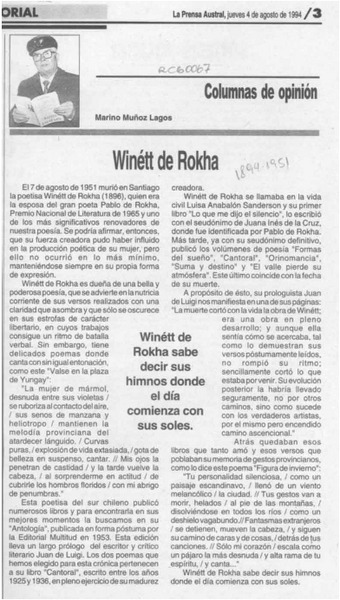 Winett de Rokha [artículo] Marino Muñoz Lagos.