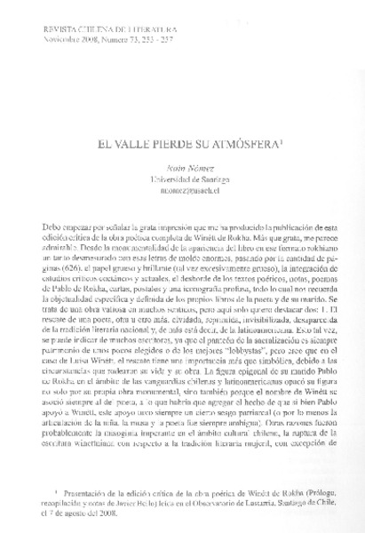 El valle pierde su atmósfera [artículo] Naín Nómez.