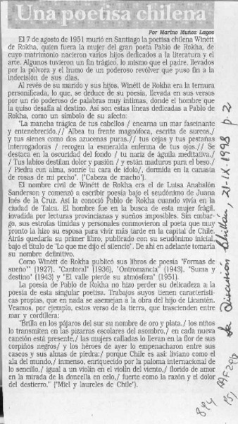 Una poetisa chilena [artículo] Marino Muñoz Lagos.