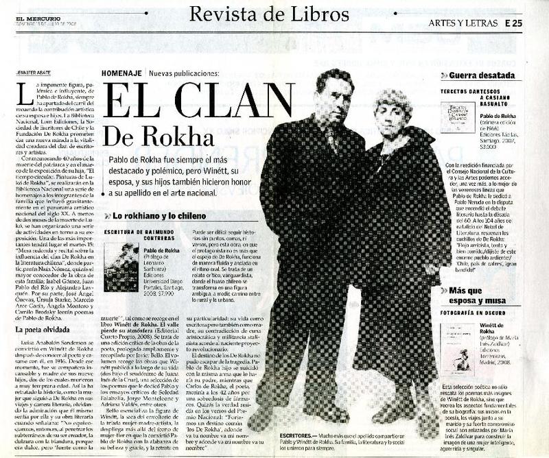 Libros y exposición reviven al legendario clan De Rokha [artículo] Roberto Careaga C.