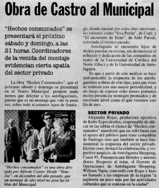 Obra teatral "Hechos consumados" se estrenará en el Teatro Municipal. [artículo]