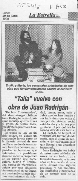 "Talía" vielve con obra de Juan Radrigán [artículo].