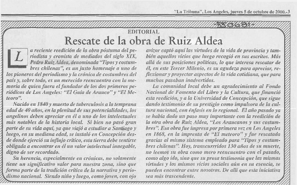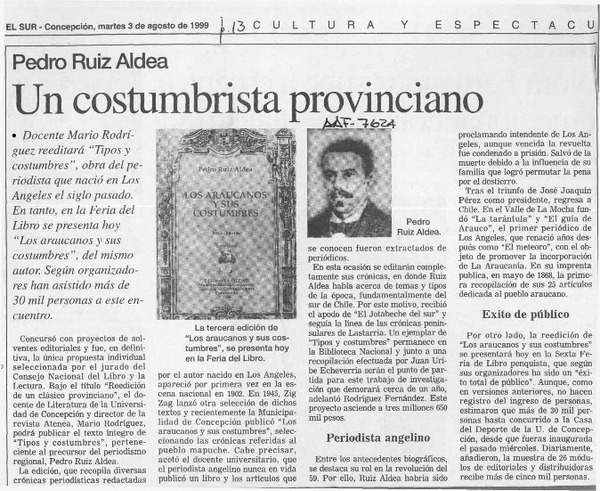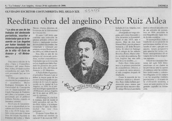 Reeditan obra del angelino Pedro Ruiz Aldea [artículo]