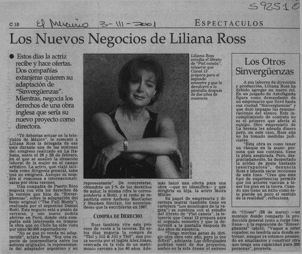 Liliana Ross prepara su próximo "taquillazo" [artículo] Javier Ibacache V.