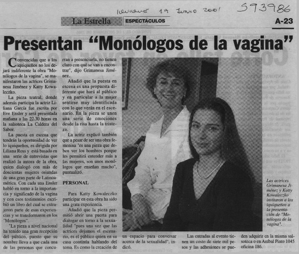 Autores chilenos - Ross, Liliana - Monólogos de la vagina