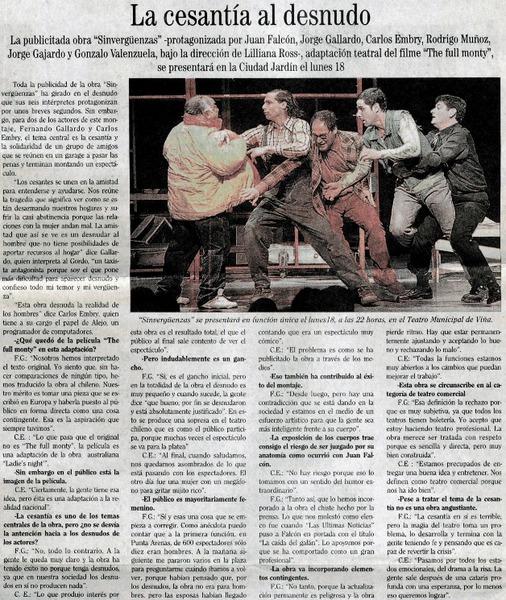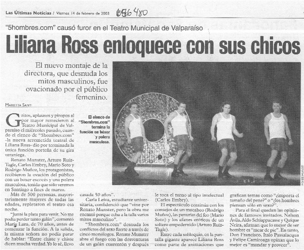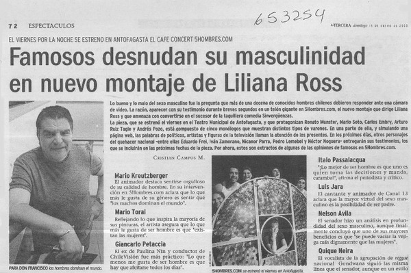 Famosos desnudan su masculinidad en nuevo montaje de Liliana Ross [artículo] Cristian Campos M.